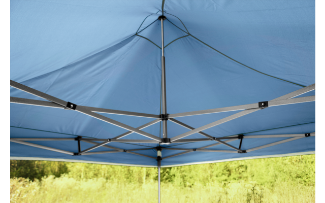 „Il padiglione può essere allestito molto rapidamente una volta che ci si è impratichiti. Il modo più semplice è assemblare il padiglione a coppie, così non ci vorranno cinque minuti per metterlo in piedi. Ma sarebbe anche possibile installarlo da solo. Il padiglione è pronto per l'uso in pochi passi. I pali pieghevoli sono facili da tirare su e il telo è semplicemente attaccato a robuste cinghie di velcro. Il padiglione può quindi essere regolato all'altezza desiderata.“